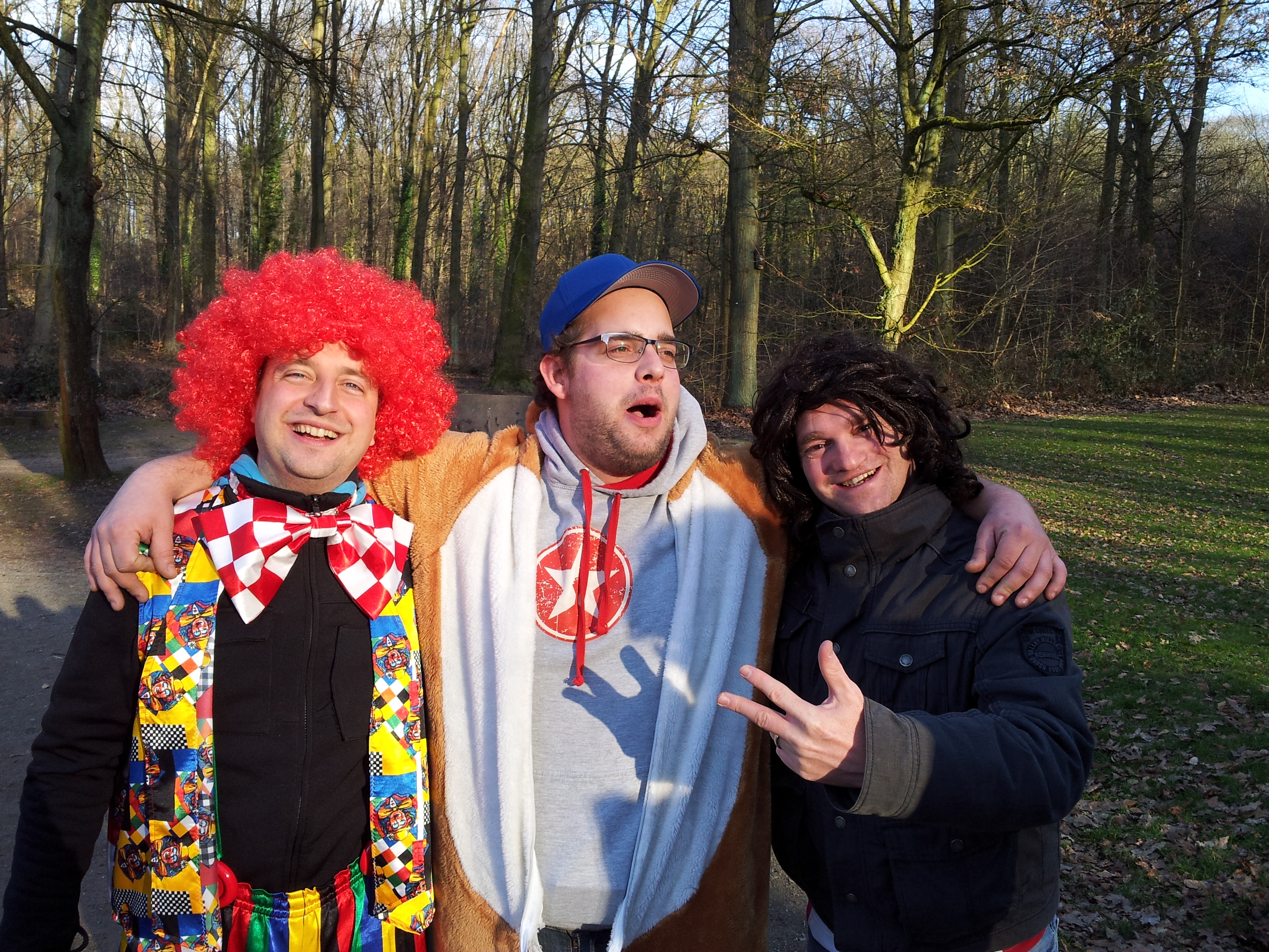 Bei herrlichem Wetter (die weiblichen Zuschauer klagten erwartungsgemäß über kalte Füße) erschien eine zu allen Schandtaten bereite Truppe im Wald, natürlich bereits voll kostümiert, wie man es an diesen Tagen ja durchgehend ist. Systematiker hatte dies zwar versäumt, unterbrach aber kurzfristig den Wettkampf, um sich in Schale zu schmeißen. (Ob das ein Vorteil für ihn war, mag aufgrund des Wettkampf-Ergebnisses allerdings bezweifelt werden.)